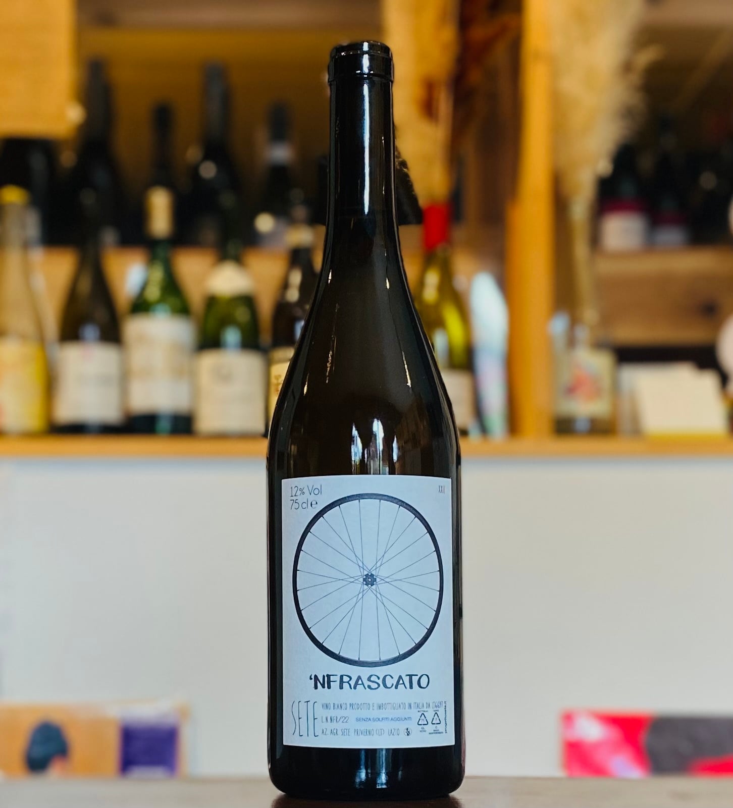 ワイン名のインフラスカートは"色々な物を混ぜ合わせた"と言う意味のスラング。元々のイタリア語は"メスコラート"。オットネーゼは3日間のマセラシオン、モスカートは1週間マセラシオン。葡萄の樹齢は40年。10%は除梗無しで全房を使用。水力で圧搾。グラフファイバーのタンクで発酵、澱と共に7ヶ月間熟成。その間の移し替えは満月の日を避けて2~3回行います。ノンフィルター。So2無添加。彼らのワインの中ではアルコールがやや高く、共通した軽快さを保ちつつ充実したジューシーさを兼ね備えたワイン。モスカートのアロマティックさとオットネーゼのミネラル感が絶妙に溶け合った中毒性の高いワイン。